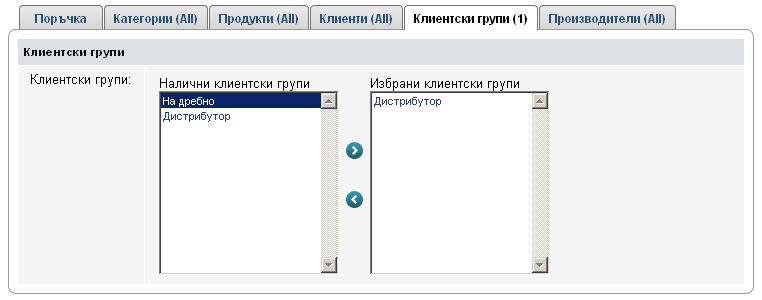 Раздел 'Клиенти' в страницата 'Редактирайте отстъпка'