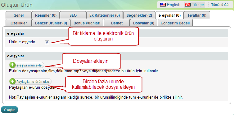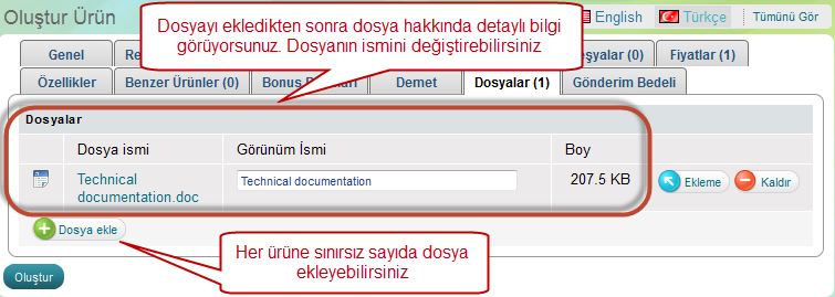 Bu bölümden ürünlere farklı dosyalar ekleyebilirsiniz.