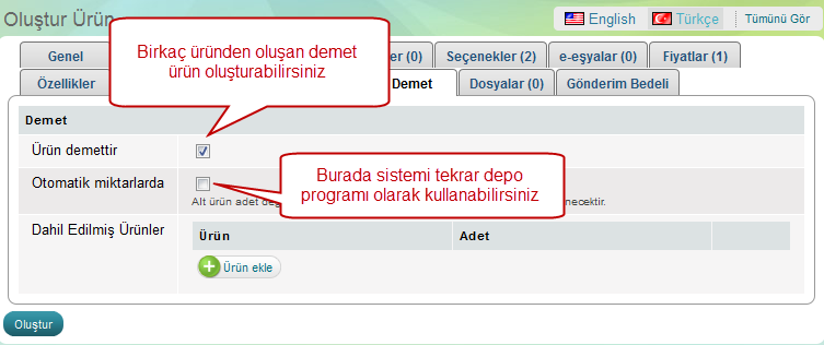 - Yeni ürün oluşturarak - bu makalede anlatılıyor.