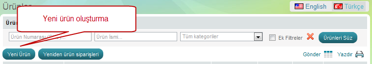 "Yeni Ürün" butonuna tıkladıktan sonra sistem aşağıdaki gibi bir sayfa açacak: